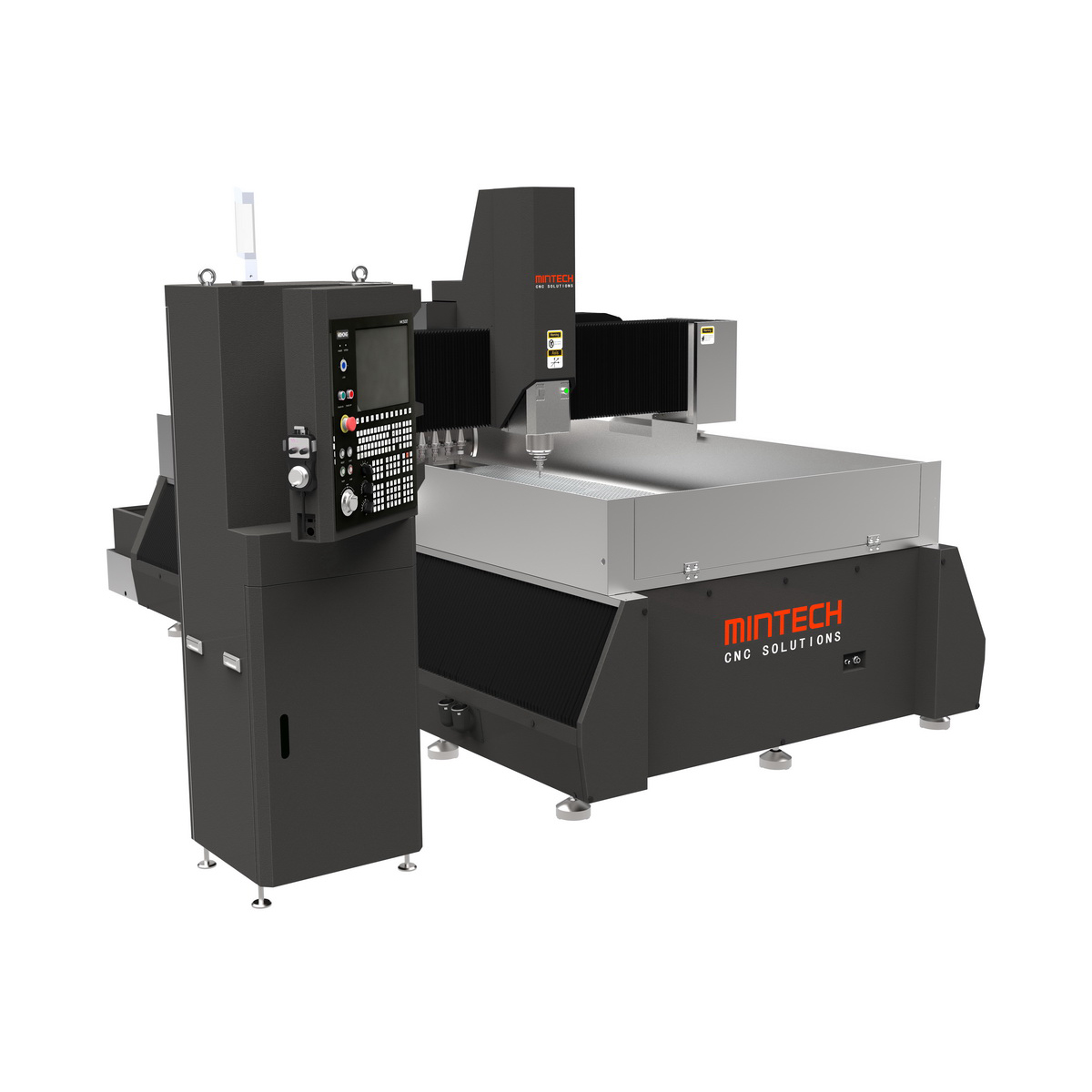Mintech MT series heavy-duty, high-precision CNC engraving and milling machines feature an integral cast structure design for the machine base and gantry beam, providing excellent structural rigidity and vibration resistance. This ensures stable motion accuracy and long-term reliability during high-speed machining. The integral structure effectively reduces structural deformation, improving the machine's dynamic response and machining stability.